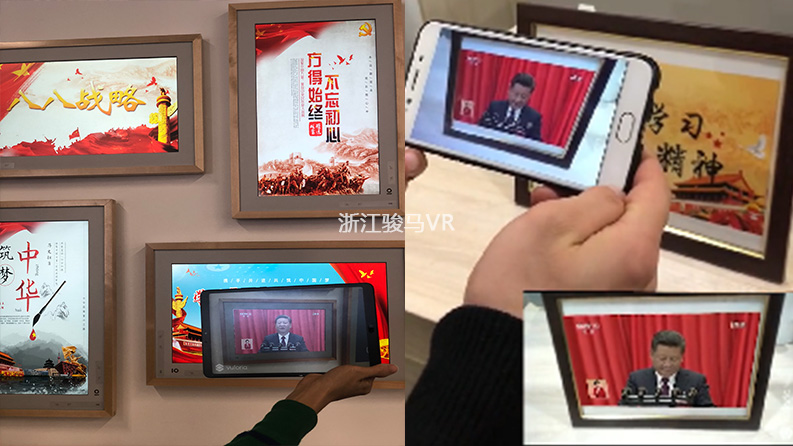 將紅色電影、黨史故事等以AR電子相框方式展示,通過平板或者安卓手機(jī)掃描圖片,讓靜態(tài)內(nèi)容動起來,讓平面內(nèi)容立起來,增強黨員學(xué)習(xí)教育生動性和趣味性。