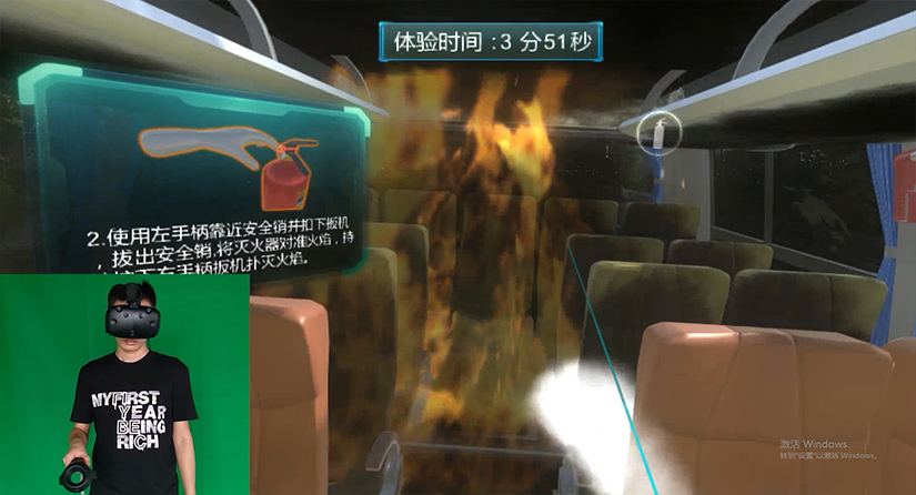 本系統(tǒng)基于三維建模、仿真引擎等技術(shù),配合HTC-viveVR外設(shè),模擬高速客運(yùn)突發(fā)火情開(kāi)發(fā)一套面向駕駛員(客運(yùn)安全員)針對(duì)火情應(yīng)如何合理安全規(guī)范的組織乘客安全逃離著火車廂,并實(shí)施相應(yīng)的應(yīng)急措施救援體驗(yàn)。