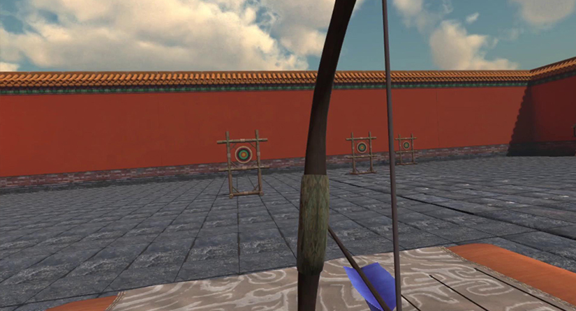 射,是指古代的軍事射箭技術(shù)。展廳將直觀展示弓與箭的形態(tài)和古人對于君子射藝的要求,并通過問答題形式開啟古代校場靶場的場景,使用者利用VR設(shè)備親子射箭,通過VR設(shè)備真實的力學(xué)反饋得到真實的體驗。