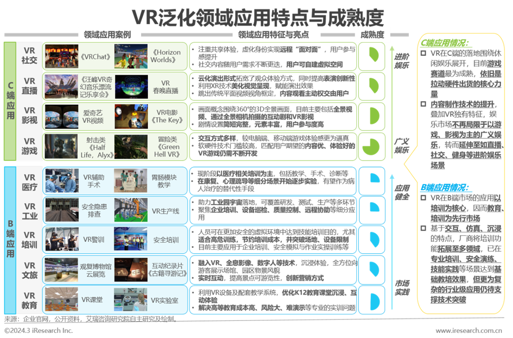 場景應(yīng)用:C端與B端同步發(fā)力,由基礎(chǔ)場景實踐如游戲、影視、文旅,向更為全面的進階場景,如社交、工業(yè)、醫(yī)療延伸