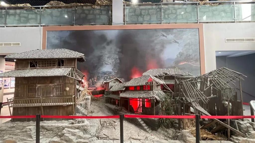 該區(qū)域?yàn)榧o(jì)念館還原場(chǎng)景區(qū),其中轟炸場(chǎng)景是通過(guò)利用現(xiàn)代的聲光電技術(shù)制造出逼真效果,再配合氛圍燈光,模擬還原歷史中日軍飛機(jī)在頭頂上方的投彈、房屋被摧毀發(fā)出劇烈爆炸的場(chǎng)景;芙蓉戰(zhàn)斗是根據(jù)現(xiàn)場(chǎng)場(chǎng)景要求,安裝壁掛有源音響并配合芙蓉戰(zhàn)斗場(chǎng)景,還原展示抗戰(zhàn)歷史事跡;兩塊場(chǎng)景也使還原使紀(jì)念館展覽更加具有立體視覺(jué)感、藝術(shù)觀賞性、參與互動(dòng)性和宣傳教育功能。