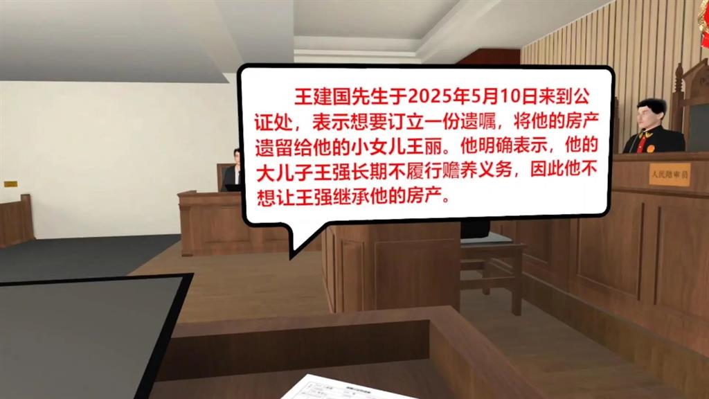 模擬成為一位公證員,體驗遺囑公證、出庭作證等公證業(yè)務流程,讓用戶在虛擬環(huán)境中深入了解公證業(yè)務的各個過程,提高業(yè)務理解和操作能力。體驗完成后將進行答題測試,以檢驗用戶對公證流程的理解程度及法律知識掌握情況。