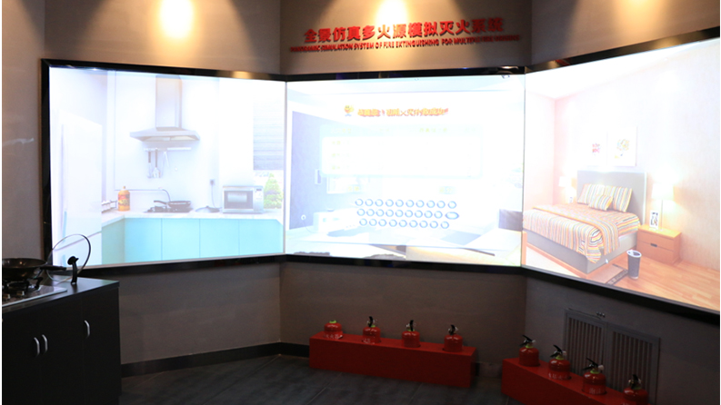 模擬滅火演練系統(tǒng)設(shè)置多個(gè)場(chǎng)景,每次隨機(jī)進(jìn)入一個(gè)場(chǎng)景,因不同物質(zhì)引發(fā)的火災(zāi)模擬視頻,體驗(yàn)者在觀看視頻后,分析可燃物起火原因、火災(zāi)類型等,拿起面前的仿真化滅火器,進(jìn)行火情撲救;了解滅火器的使用方式、適用火災(zāi)類型、用量和可用時(shí)間等。