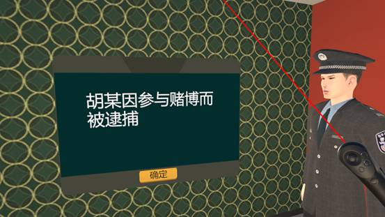 本系統(tǒng)以社區(qū)矯正人員胡某參與賭博的視角。進(jìn)行了胡某朋友拉人賭博,胡某女兒進(jìn)行勸阻,胡某置之不理參與賭博,賭博時(shí)被捕,被捕后深深懊悔,釋放后被催債,后來(lái)妻離子散,感到整個(gè)世界都崩塌了的體驗(yàn)。