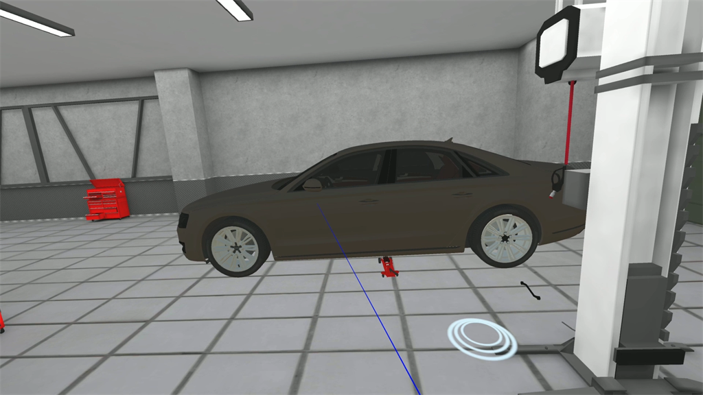 VR汽車輪毅改裝場(chǎng)景,還原汽車車間和換輪毅操作流程,服刑人員帶上VR眼睛,沉浸式學(xué)習(xí)換輪毅拆裝,換輪毅工具的識(shí)別和工具操作,讓服刑人員可以在虛擬場(chǎng)景中反復(fù)實(shí)踐,學(xué)習(xí)汽車輪胎修補(bǔ)技能。