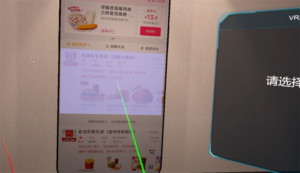 VR外賣下單操作模擬