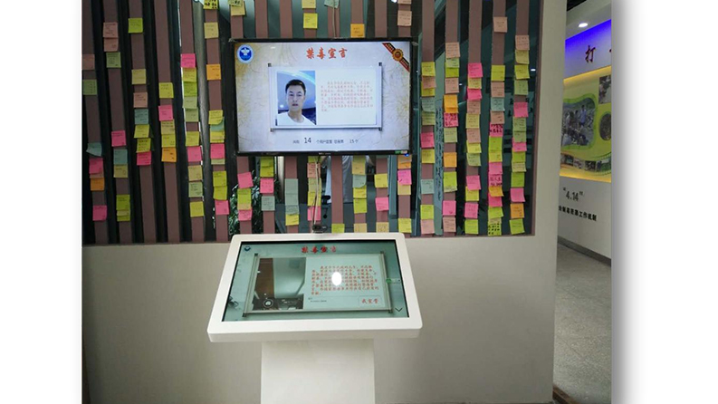 禁毒立誓拍照:電子簽名及自動拍照組成,使用了先進的人像識別技術(shù),可以在觸摸顯示屏上進行自由的拍 照和個人化簽名、留下紀念,使得禁毒宣誓更有儀式感。
