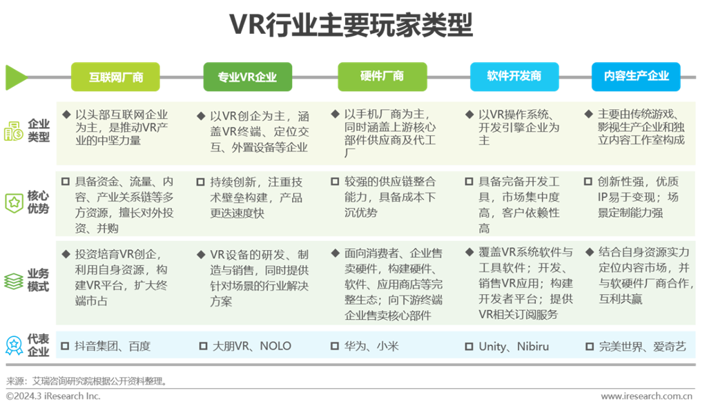 刀光劍影:硬件頭部較為集中,軟件服務(wù)多依托成熟業(yè)務(wù)向VR延伸