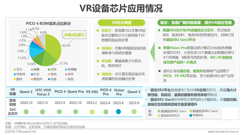 芯片是VR硬件的重要價值構(gòu)成,暫由海外龍頭主導(dǎo),國內(nèi)廠商積極搶攻